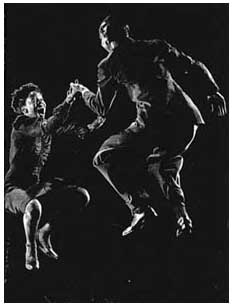 An early divergence in "Savoy Style" occurred when frisky Frank Manning debuted the first aerial move (a back-to-back flip) at a Savoy contest against teammate "Shorty" George Snowden From that ecstatic moment (and the roar of crowd approval), many teenagers began to explore acrobatic and dance possibilities. Others, including Shorty, dedicated themselves to floorwork. In the '90s, repeated surgeries have prompted some the most gifted professional aerialettes to give up the drastic stuff. However, aerials in varying degrees remain the inviolable birthright of the young and frisky.