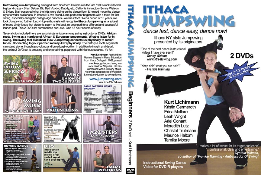 - Frankie Manning www.frankiemanning.com "Jumpswing makes a lot of sense for its target audience. The DVD presentation is professional, clear and entertaining. I especially like the way concepts are also scatted, danced, or acted out. The "roots" and "music" segments, unusual in a swing dance instructional video, are worthwhile and densely packed with food for thought." - Cynthia Millman, co-author of "Frankie Manning - Ambassador Of Swing"